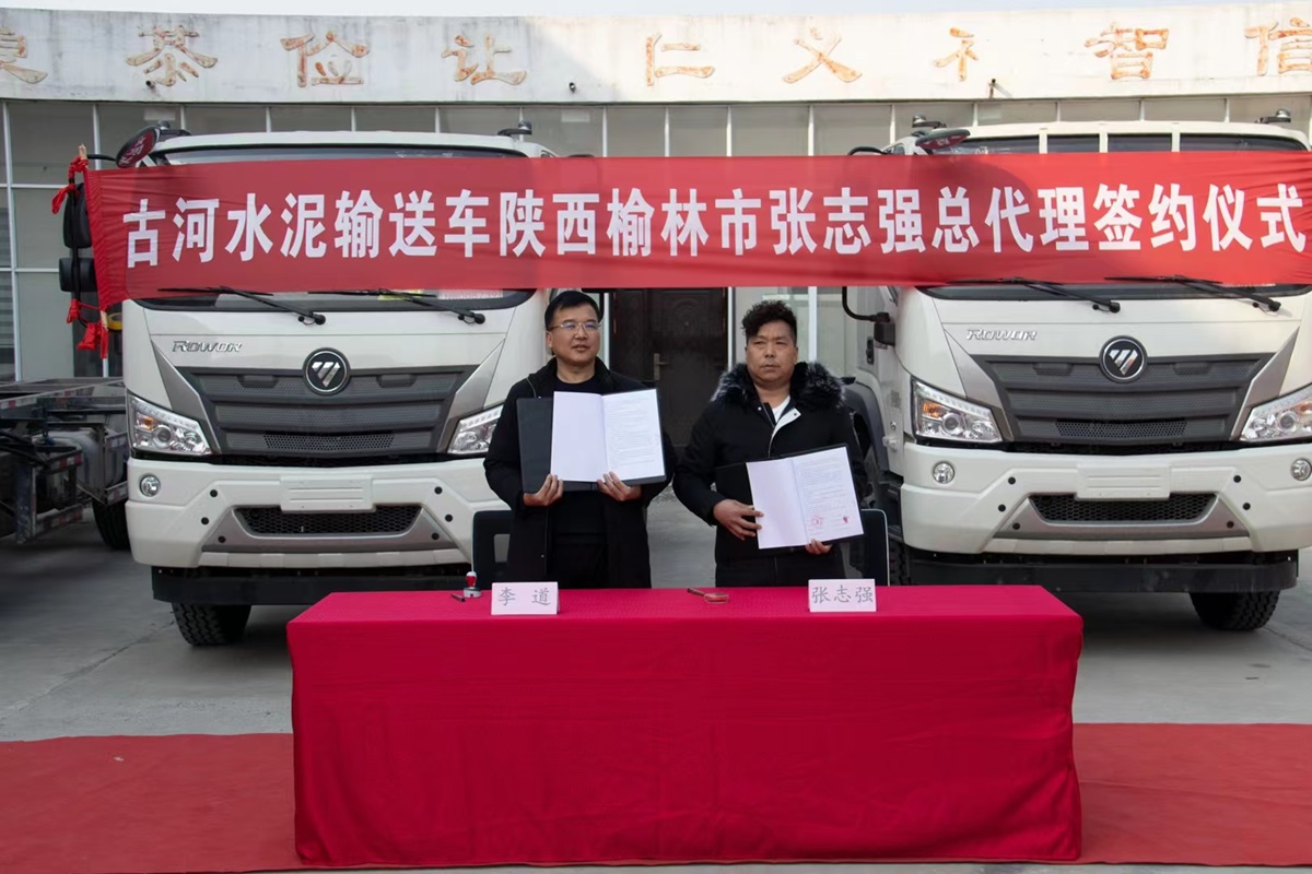 祝賀古河水泥輸送車青海西寧市總代理尹總簽約成功!